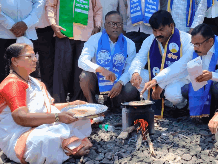 'वंचित'च्या कार्यकर्त्यांनी साताऱ्यात थापल्या चुलीवर भाकऱ्या:गॅस टंचाईच्या निषेधार्थ जिल्हाधिकारी कार्यालयासमोर आंदोलन