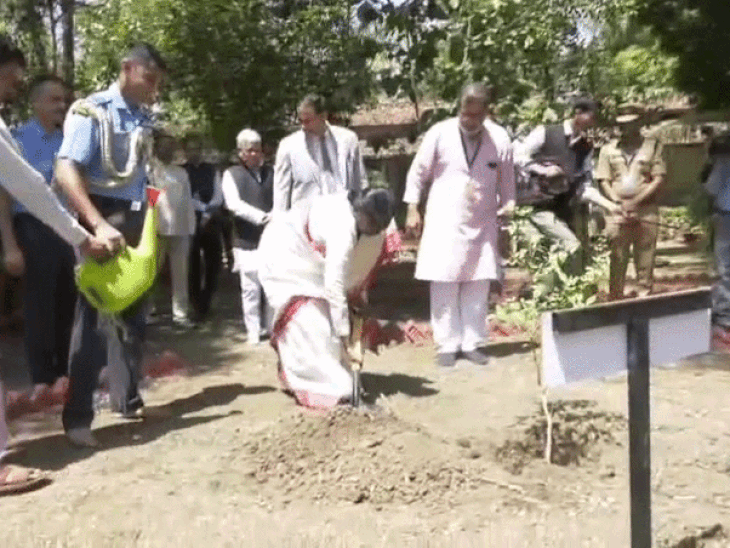 45 अंशांच्या कडाक्यात राष्ट्रपती मुर्मूंचे सेवाग्रामात वृक्षारोपण:साधेपणातून दिला निसर्गसंवर्धनाचा संदेश