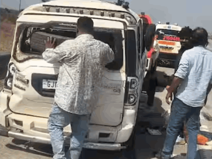 समृद्धी महामार्गावर स्कॉर्पियोचा भीषण अपघात:टायर फुटल्याने गाडी पलटली; गुजरातचे 5 प्रवासी जखमी, सुदैवाने जीवितहानी टळली