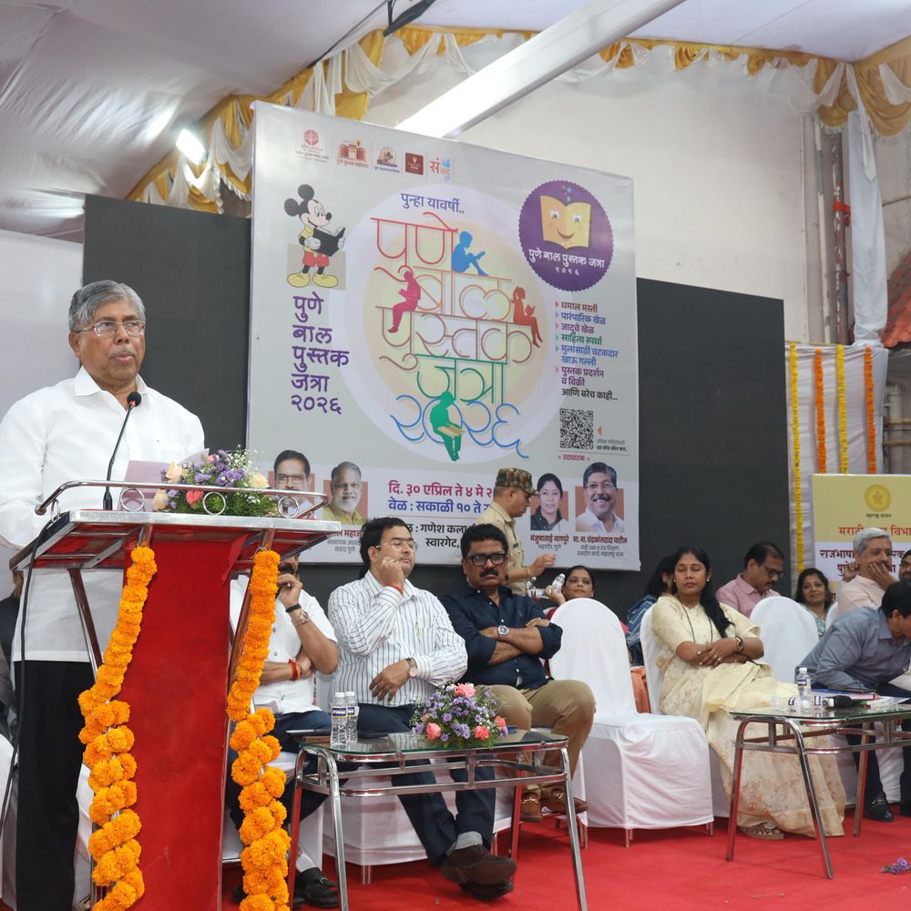 शंभरावे अखिल भारतीय मराठी साहित्य संमेलन पुण्यातच:उच्च शिक्षण मंत्री चंद्रकांत पाटील यांची पुणे बाल पुस्तक जत्रेत घोषणा