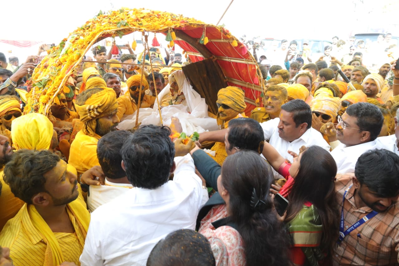 यावेळी लाखो भाविकांनी पालखीचे दर्शन घेतले. खंडोबाच्या व मानकऱ्यांच्या पालखीचे प्रति वर्षाप्रमाणे शासकीय विश्रामगृहावर जिल्हा परिषदेच्यावतीने स्वागत करण्यात आले. दुपारी पालखी पुजनानंतर देव स्वारी काढण्यात आली. यावेळी मानकऱ्यांचा गौरव करण्यात आला.यावेळी सहकारमंत्री बाळासाहेब पाटील, राज्यमंत्री मेघना बोर्डीकर, आमदार प्रतापराव पाटील चिखलीकर, जि.प. माजी सभापती प्रविण पाटील चिखलीकर, जिल्हा परिषदेच्या मुख्य कार्यकारी अधिकारी तथा प्रशासक मेघना कावली, सामाजिक कार्यकर्त्या प्रणिताताई देवरे-चिखलीकर यांची उपस्थिती होती.