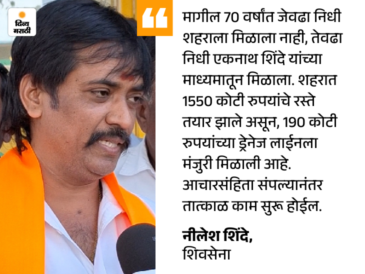 शिवसेना एकनाथ शिंदे गटाचे पदाधिकारी नीलेश शिंदे यांनी सरकारच्या कामगिरीचा पाढा वाचला. मागील 70 वर्षांत जेवढा निधी शहराला मिळाला नाही, तेवढा निधी एकनाथ शिंदे यांच्या माध्यमातून मिळाल्याचा दावा त्यांनी केला. शहरात 1550 कोटी रुपयांचे रस्ते तयार झाले असून, 190 कोटी रुपयांच्या ड्रेनेज लाईनला मंजुरी मिळाल्याचे त्यांनी सांगितले. आचारसंहिता लागू झाल्यामुळे काम सुरू होऊ शकले नसले तरी, ती संपल्यानंतर तात्काळ काम सुरू होईल, असे त्यांनी स्पष्ट केले.