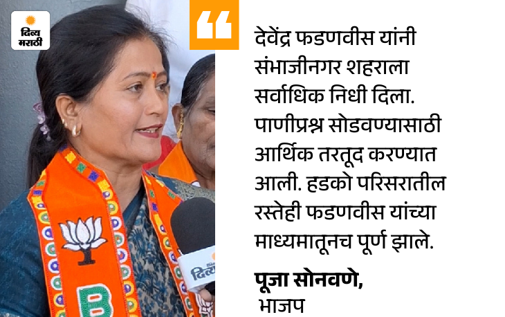 शिवसेना एकनाथ शिंदे गटाच्या माजी नगरसेविका पद्मा शिंदे यांनी विकासकामांच्या मुद्द्यावर ठाम भूमिका मांडली. हडको-सिडको परिसरातील रस्त्यांच्या समस्यांवर तोडगा काढण्यासाठी तत्कालिन मुख्यमंत्री एकनाथ शिंदे यांच्या कार्यकाळात मोठ्या प्रमाणात निधी उपलब्ध करून देण्यात आल्याचा दावा त्यांनी केला. एकनाथ शिंदे मुख्यमंत्री होण्यापूर्वी या प्रभागात नगरसेवक नव्हते का, असा सवाल उपस्थित करत, प्रत्यक्षात रस्त्यांची बहुतेक कामे ही शिंदे यांच्या नेतृत्वाखालीच झाली असल्याचे त्यांनी स्पष्ट केले. भाजपच्या इच्छुक उमेदवार पूजा कैलास सोनवणे यांनीही निधीच्या मुद्द्यावर भर दिला. मुख्यमंत्री देवेंद्र फडणवीस यांनी छत्रपती संभाजीनगर शहराला आजवर सर्वाधिक निधी दिला असल्याचा दावा करत, विशेषतः पाणीप्रश्न सोडवण्यासाठी मोठ्या प्रमाणात आर्थिक तरतूद करण्यात आल्याचे त्या म्हणाल्या. हडको परिसरातील रस्तेही देवेंद्र फडणवीस यांच्या माध्यमातूनच पूर्ण झाल्याचे त्यांनी सांगितले.