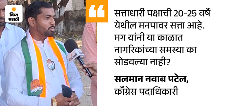काँग्रेसचे सलमान नवाब पटेल म्हणाले की, आमच्या प्रभागतील 75 टक्के भागात काहीही कामे झालेली नाही. आमच्याकडे मोठे रस्ते नाहीत, अनेक ठिकाणी कचरा पडलेला असतो. आमच्या परिसरातील 20 बाय 30 ची घरे आहेत त्यांना 8 दिवसाला पाणी मिळते. त्यांना टँकरने पाणी विकत घ्यावे लागते. सत्ताधारी पक्षाची 20-25 वर्षे मनपावर सत्ता आहेत मग यांनी या काळात नागरिकांच्या समस्या का सोडवल्या नाही. आम्ही निवडून आलो किंवा नाही तरी आम्ही लोकांसाठी काम करणार आहोत.