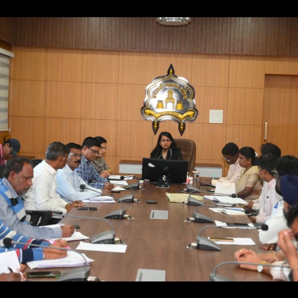स्वच्छता कंत्राटदार आणि मनपा अधिकाऱ्यांची बैठक घेताना आयुक्त सौम्या शर्मा-चांडक.
