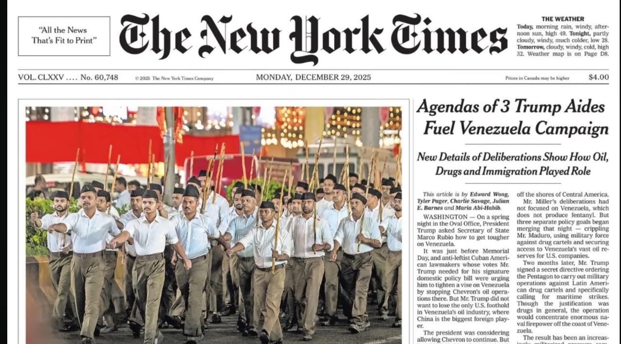 अमेरिकेतील आणि जगभरात प्रभाव असलेल्या न्यूयॉर्क टाइम्स या प्रतिष्ठित वर्तमानपत्राने भारतातील सध्याच्या राजकीय आणि सामाजिक परिस्थितीबाबत एक सविस्तर आणि संशोधनाधारित बातमी प्रसिद्ध केली आहे. या वृत्तानुसार, भारतात राष्ट्रीय स्वयंसेवक संघ (आरएसएस) आणि हिंदुत्वाच्या विचारसरणीच्या आडोशाखाली देशातील विविध यंत्रणांवर दीर्घकाळात मजबूत पकड निर्माण करण्यात आली असून, ती पकड आता सैल करणे अत्यंत कठीण झाले आहे.जरी हे वृत्त अमेरिकेत प्रसिद्ध झाले असले, तरी न्यूयॉर्क टाइम्सचे जागतिक वाचकवर्ग असल्यामुळे या बातमीची चर्चा भारतासह युरोप, ऑस्ट्रेलिया आणि मध्यपूर्वेतही होत आहे. या वृत्ताचे काही भाग भारतातून, विशेषतः नागपूर येथून संकलित करण्यात आल्याचेही नमूद करण्यात आले आहे.
