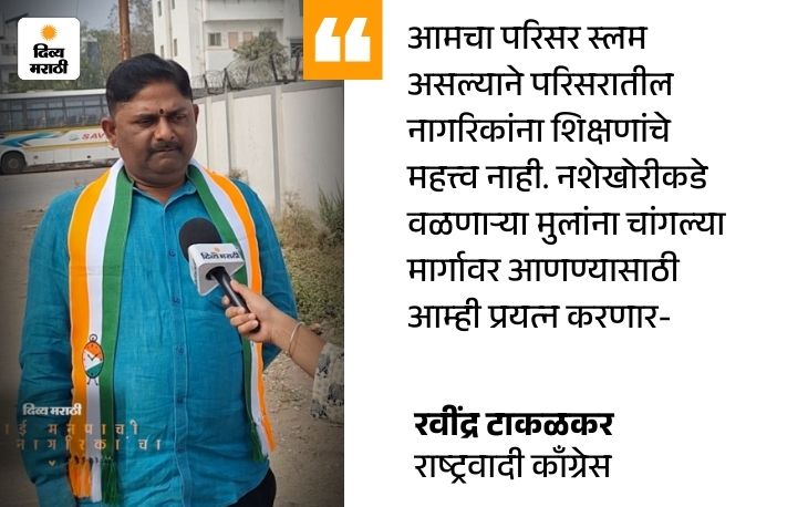 राष्ट्रवादी काँग्रेसचे रवींद्र टाकळकर म्हणाले की, आमच्या मतदारसंघात भरपूर अडचणी आहेत. या प्रभागात काँग्रेसचे नगरसेवक आहेत त्यांनी अद्याप समस्या सोडवलेल्या नाहीत. आमच्या प्रभागात महिला सुरक्षा हा सर्वात महत्त्वाचा मुद्दा आहे. महिलांसाठी या प्रभागात कुठेही सार्वजनिक शौचालय उभारण्यात आलेले नाही. तर ज्येष्ठांना आणि मुलांना खेळण्यासाठी एकही मैदान नाही. आमच्या परिसरातील मनपाच्या शाळेत सीबीएसइ पॅटर्नचे शिक्षण मिळावे यासाठी आम्ही प्रयत्न करणार आहोत. शिक्षण, आरोग्य आणि महिलांच्या सुरक्षेच्या प्रश्नावर काम करणार आहोत. आमचा परिसर स्लम असल्याने परिसरातील नागरिकांना शिक्षणांचे महत्त्व नाही. परिसरातील नशेखोरीकडे वळणाऱ्या मुलांना चांगल्या मार्गावर आणण्यासाठी आम्ही प्रयत्न करणारआहोत. जिन्सी परिसरात मोठ्या प्रमाणात गुन्हेगारीचा विषय दिसून येतो. आमच्या भागात पथदिवे नाही या ठिकाणी एकाच घरातील उमेदवार असल्याने ही परिस्थिती ओढवली आहे. आम्ही धार्मिक स्थळांसमोर असलेल्या घाणींच्या मुद्द्यावर देखील लक्ष केंद्रित करणार आहोत.