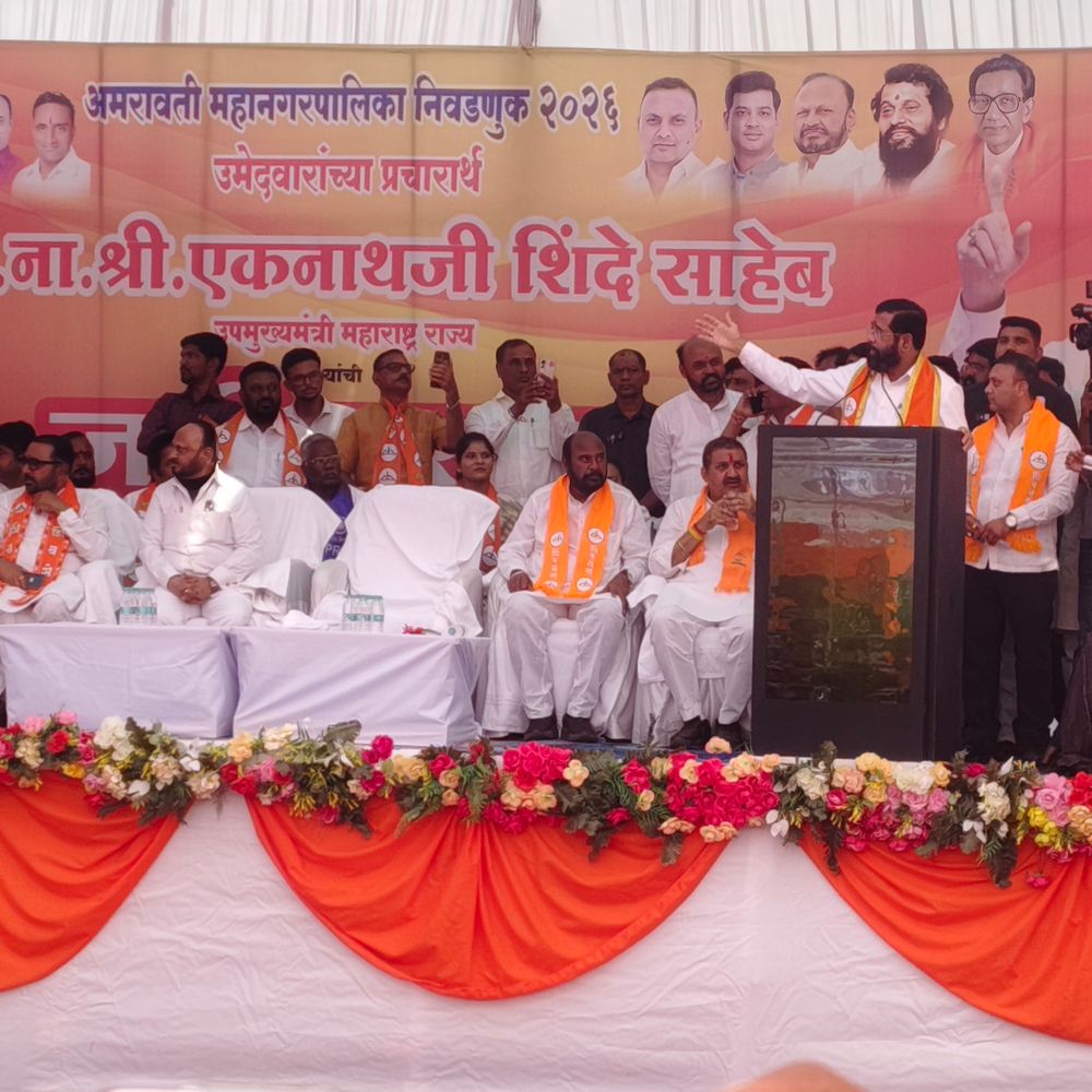 उपमुख्यमंत्री एकनाथ शिंदे यांनी अमरावतीत विरोधकांना चारी मुंड्या चीत करण्याचा संकल्प व्यक्त केला. त्यांनी भारतीय जनता पक्षाचे नाव न घेता हे विधान केले. मनपा निवडणुकीतील शिवसेना उमेदवारांच्या प्रचारार्थ नेहरु मैदानात आयोजित जाहीर सभेत ते बोलत होते. वि