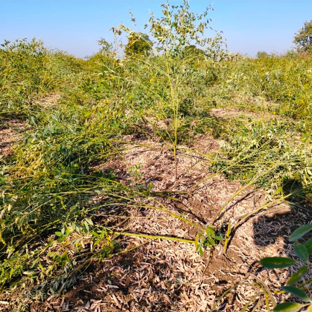वन्य प्राण्यांच्या उच्छादामुळे तुरीचे पीक असे जमीनदोस्त झाले.