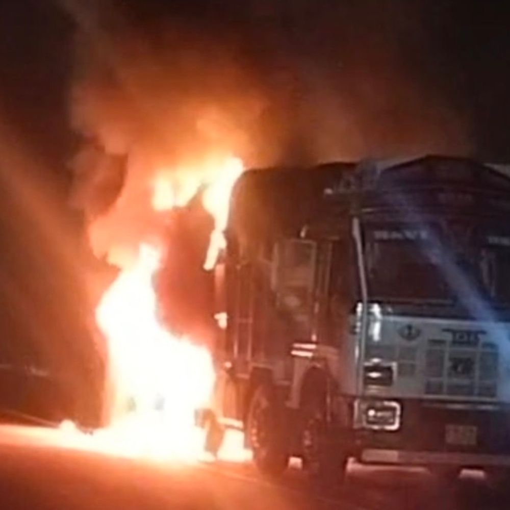 तिवसा-नागपूर राष्ट्रीय महामार्गावर रविवारी रात्री एका मालवाहू ट्रकला भीषण आग लागली. टायर फुटल्याने ही घटना घडली असून, प्लास्टिकचे दाणे भरलेला ट्रक पूर्णपणे जळून खाक झाला. या घटनेमुळे अमरावती-नागपूर राष्ट्रीय महामार्गावरील वाहतूक सुमारे एक तास खोळंबली
