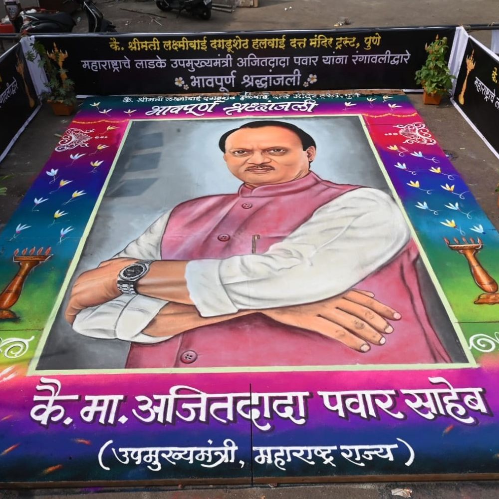 उपमुख्यमंत्री अजित पवार यांना रंगावलीतून सन्मान:दत्तमंदिर ट्रस्टतर्फे भव्य कलाकृती साकारत अभिवादन