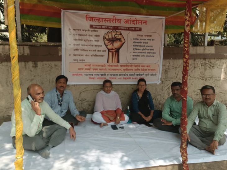 मानधनासाठी कंत्राटी कर्मचारी आक्रमक:सातारा जिल्हा परिषदेसमोर कामबंद आंदोलन, स्वच्छ भारत मिशनचे काम ठप्प