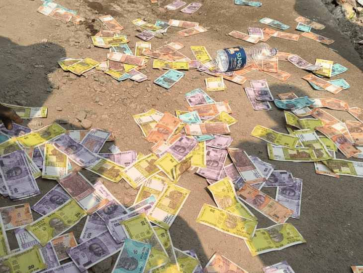 औंढ्यात अनुदानासाठी पैसे मागणाऱ्या अधिकाऱ्यांच्या विरोधात ठाकरे गटाचे भिकमांगो आंदोलन:एक तासात जमा झाले 2500 रुपये