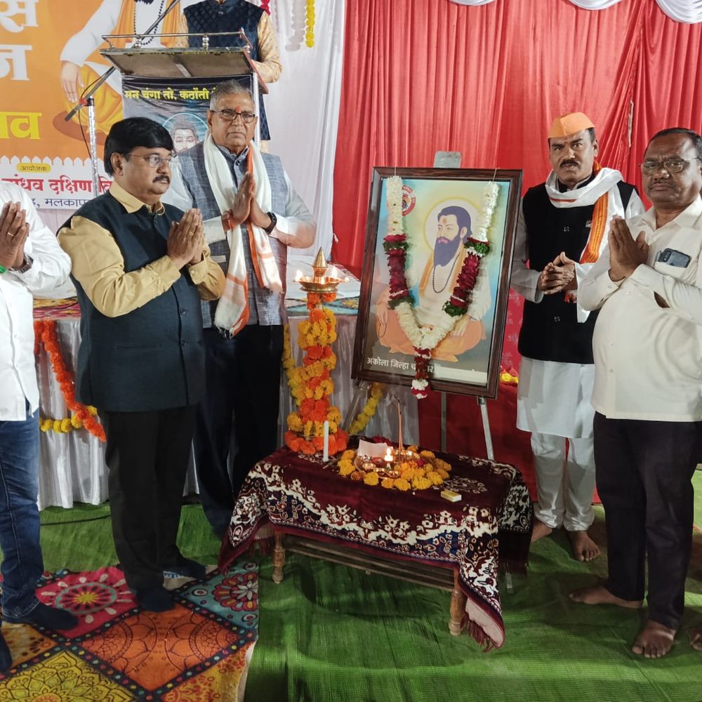 प्रतिनिधी | अकोला दक्षिण विभागातील चर्मकार समाज बांधवांच्या वतीने आयोजित संत शिरोमणी रविदास महाराज जयंती उत्सव व समाजाचा स्नेहमिलन सोहळा नुकताच झाला. सर्वप्रथम साई गजानन गुरुदेव भजन मंडळाची बहारदार भजन संध्या पार पडली. प्रा. महादेव नाचणे यांच्या अध्यक्षतेखाली झालेल्या या कार्यक्रमात नायब तहसीलदार महादेव चिमणकर, प्रा. गजानन पद्मने, ग्रामगीताचार्य श्रीकृष्ण सावळे, नगरसेवक धनंजय धबाले व संदीप शेगोकार आदी उपस्थित होते. प्रा. डॉ. गजानन डोईफोडे यांनी प्रास्ताविक केले. नगरसेवक धनंजय धबाले, संदीप शेगोकार, डॉ. उंबरकर, सारिका सातपुते व चंद्रशेखर चतारे यांचा सत्कार करण्यात आला. सूत्रसंचालन प्रा. वासुदेव डांगे यांनी केले. अॅड. गोपाल धबाले यांनी आभार मानले.