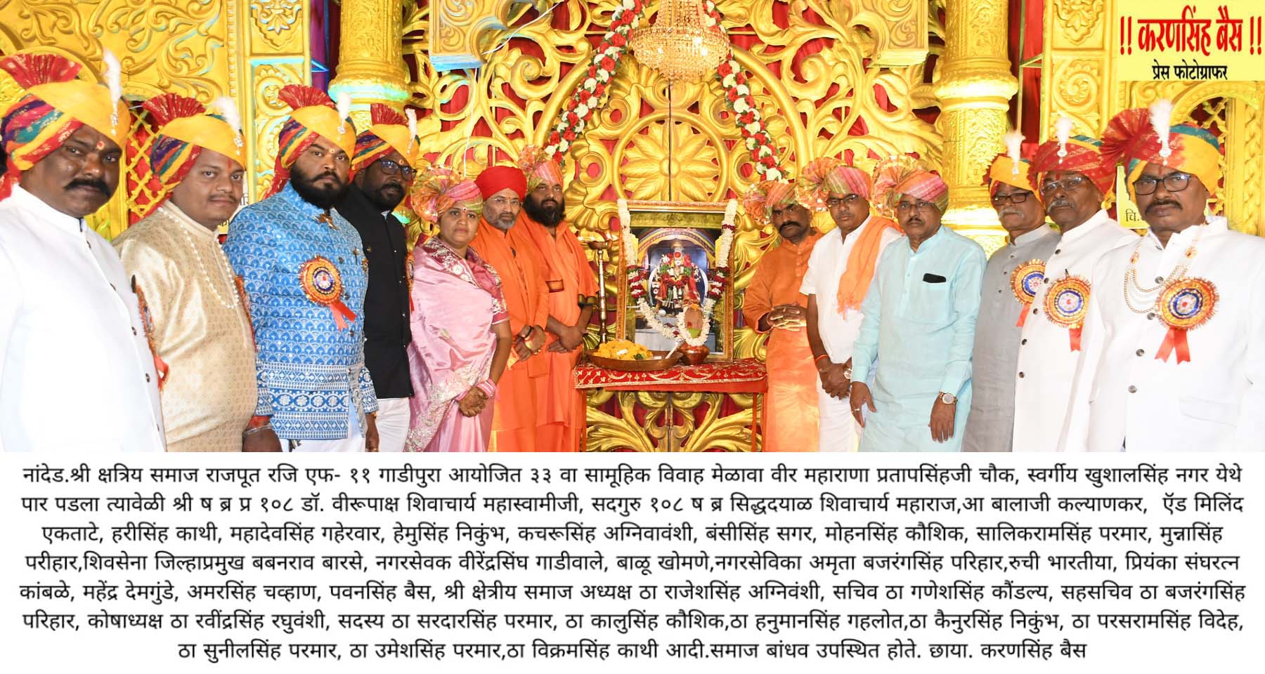 नांदेड (प्रतिनिधी)- श्रीक्षत्रिय समाज राजपूत यांच्या वतीने दरवर्षी आयोजित करण्यात येणारा सामुदायिक विवाह मेळावा काल अत्यंत उत्साह, आनंद आणि सामाजिक ऐक्याच्या वातावरणात मोठ्या यशस्वीपणे पार पडला. हा मेळावा समाजाचा ३३ वा सामूहिक विवाह सोहळा असून, यंदा एकूण २४ नवदांपत्यांचे पवित्र विवाहबंधनात बांधले गेले.