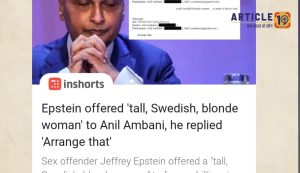 जो व्यक्ती सोनेरी केसांच्या मुली अरेंज करण्याच्या चर्चेत अडकलेला आहे, त्याच्या कंपनीला भारताचे संरक्षण करार देणे योग्य आहे का? भारत कोणासोबत संरक्षण सौदे करतो, त्या अटी काय असतात, आणि त्या सौद्यांचा वापर देशासाठी होतो की काही निवडक लोकांच्या फायद्यासाठी? ते सर्व गुपित एपस्टीन ला सांगितले नसणार काय हा प्रश्न केवळ राजकारण्यांनी नाही, तर प्रत्येक नागरिकाने स्वतःला विचारला पाहिजे. कारण हा विषय गॉसिपचा नाही हा विषय भारताच्या सुरक्षेशी खेळण्याचा आहे.