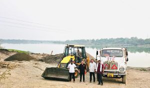 नांदेड (प्रतिनिधी)- जिल्हा विशेष पथकाने १४ फेब्रुवारी रोजी सायंकाळी सहा वाजण्याच्या सुमारास पोलीस ठाणे विमानतळ हद्दीपूर्वी असलेल्या मौजे मुगट, ब्राह्मणवाडा आणि मुदखेड शिवारातील हिरा घाट परिसरातील रेती धक्क्यांवर धडक कारवाई केली. या कारवाईत नदीपात्रातून बाहेर काढून साठवून ठेवलेली सुमारे ४० ब्रास वाळू, दोन टिप्पर आणि एक जेसीबी मशीन असा सुमारे ६१ लाख रुपयांचा मुद्देमाल जप्त करण्यात आला.
