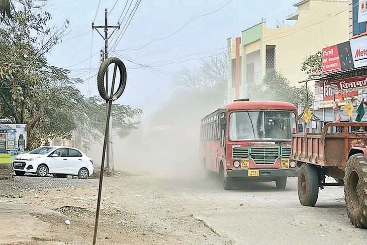 रस्त्यांवरून दररोज मोठ्या संख्येने अवजड वाहने, ट्रक, कंटेनर, डंपर व मालवाहू वाहने जात असल्याने सतत धूळ उडत आहे. या मार्गाचा वापर स्थानिक रहिवासी, विद्यार्थी, दुचाकीस्वार आणि पादचारी रोज करतात. मात्र, रस्त्यावरील असमानता खड्डे, डांबरीकरण असूनही कच्चा रस्तासदृश बनलेल्या या रस्त्यावर सतत वाहतुकीचा भार यामुळे हा मार्ग धुळीचा पट्टा बनला आहे. सकाळच्या आणि संध्याकाळच्या गर्दीच्या वेळी तर परिस्थिती अधिकच बिकट होते.