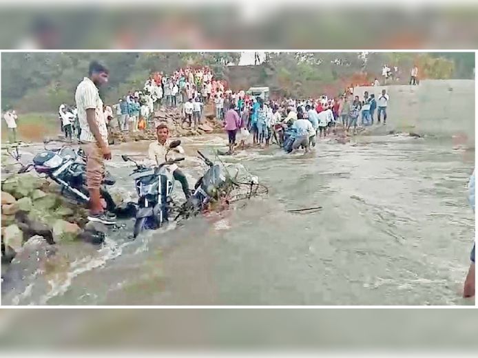 चणकापूरमधून आवर्तन, पाण्यात अडकल्या यात्रेकरूंच्या दुचाकी:पाटबंधारे विभागाने पाणी सोडण्याबाबत केलेल्या सूचनांकडे दुर्लक्ष