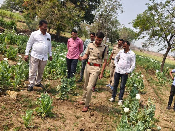 वसमत तालुक्यातील मुर्तीजापूर सावंगी शिवारात औंढा नागनाथ पोलिस व स्थानिक गुन्हे शाखेच्या पथकाने एका शेतातून तब्बल अर्धा एकर जमीनीवर लावण्यात आलेले अफूची झाडे गुरुवारी ता. १९ जप्त केली आहे. सुमारे ४ क्विंटल अफूची किंमत ७ लाख रुपये असल्याचे पोलिसांनी सांगितले. या प्रकरणी एका व्यक्तीला ताब्यात घेण्यात आले आहे. हिंगोली जिल्हयातील अवैध व्यवसाय बंद करण्यासाठी पोलिस अधिक्षक निलाभ रोहन, अप्पर पोलिस अधिक्षक कमलेश मीना यांनी गुन्हे शाखा व १३ ठाणेदारांची पथके स्थापन केली आहेत. या पथकाकडून अवैध वाळू वाहतूक, मटका, जुगारअड्डे यांची माहिती घेऊन छापे टाकले जात आहेत. या शिवाय शस्त्र बाळगणाऱ्यांवरही कारवाई केली जात आहे. दरम्यान, पोलिसांनी मागील चार दिवसांपासून गांजा व अफुची शेती करणाऱ्यांची माहिती घेऊन कारवाई केली जात आहे. दोन दिवसांपुर्वीच स्थानिक गुन्हे शाखेच्या पथकाने वसमत तालुक्या्तील सिरळी शिवारातून १ क्विंटल ७७ किलो अफू जप्त केला होता. या प्रकरणी औंढा नागनाथ पोलिस ठाण्यात गुन्हा दाखल होऊन तपास सुरुच आहे. या सोबतच मुर्तीजापूर सावंगी शिवारात गुलाब राठोड याच्या शेतात अफुची लागवड केल्याची माहिती पोलिसांना मिळाली होती. त्यावरून गुन्हे शाखेचे निरीक्षक मोहन भोसले, औंढा पोलिस ठाण्याचे निरीक्षक जी. एस. राहिरे, सहाय्यक पोलिस निरीक्षक शिवसांब घेवारे, उपनिरीक्षक दत्ता कानगुले, अमोल इंगोले यांच्यासह ४० जणांच्या पथकाने आज सकाळीच शेताची माहिती घेण्यास सुरवात केली. पहाटे सहा ते नऊ असे तीन तास शोध मोहिमेनंतर पोलिसांना गव्हाच्या पिकात अफुची लागवड केलेली दिसून आली. घटनास्थळी पोलिस निरीक्षक निलाभ रोहन यांनी भेट देऊन पाहणी केली. दरम्यान, पोलिसांनी अफुची झाडे उपटून त्याचे मोजमाप केले असता अफूच्या झाडांचे वजन ४ क्विंटल भरले असून त्याची किंमत सुमारे ७ लाख रुपये असल्याचे सुत्रांनी सांगितले. पोलिसांनी गुलाब जाधव यास ताब्यात घेतले आहे. या प्रकरणी रात्री उशीरा पर्यंत गुन्हा दाखल झाला नाही. सिध्देश्वर शिवारात ज्वारीच्या पिकांतून गांजा जप्त यासोबतच औंढा पोलिस ठाण्याचे सहाय्यक पोलिस निरीक्षक कैलास भगत यांच्या पथकाने सिध्देश्वर शिवारात प्रल्हाद राठोड याच्या शेतात ज्वारीच्या पिकात पाहणी केली असता त्या ठिकाणी गांजाची झाडे असल्याचे दिसून आले. पोलिसांनी गांजाची झाटे उपटून वजन केले असता १० किलो वजन भरले असून त्याची किंमत १ लाख रुपये असल्याचे पोलिसांनी सांगितले. या प्रकरणी प्रल्हाद यास ताब्यात घेतल्याचे पोलिसांनी स्पष्ट केले.