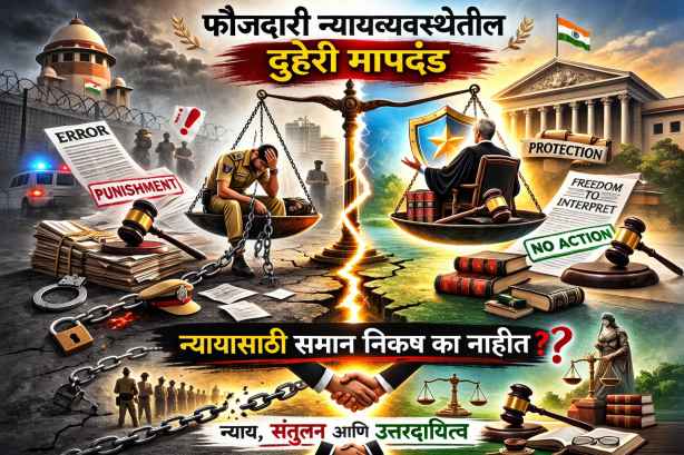 फौजदारी न्यायव्यवस्थेतील दुहेरी मापदंड हा विषय अत्यंत संवेदनशील आणि विचारप्रवर्तक आहे. लोकशाही व्यवस्थेत फौजदारी न्यायव्यवस्था प्रामुख्याने दोन स्तंभांवर उभी आहे पोलीस यंत्रणा आणि न्यायपालिका दोन्हींचे कार्य वेगवेगळे असले तरी अंतिम उद्दिष्ट एकच असते: न्याय मिळवून देणे.