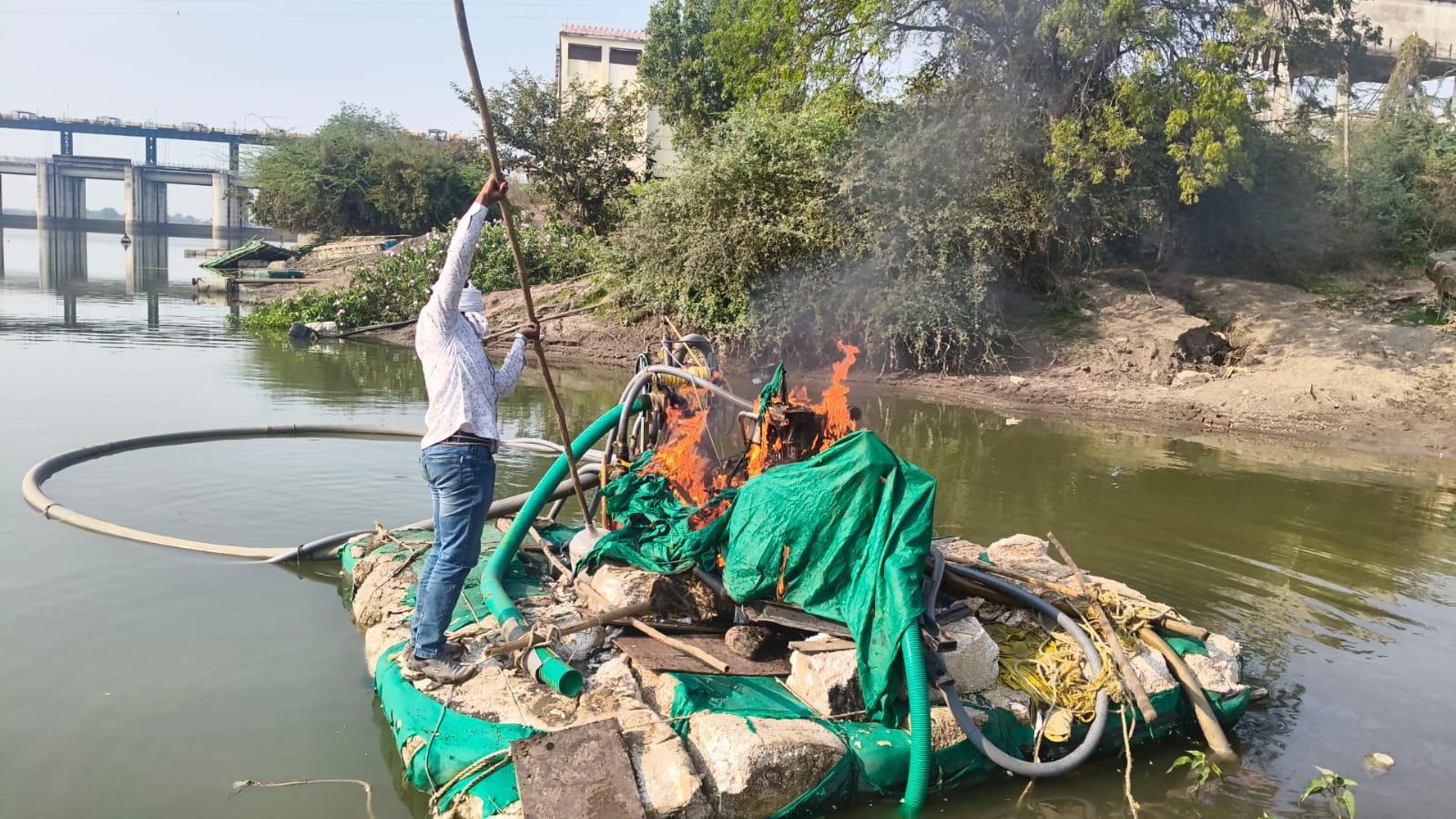 सापडलेले इंजिन आणि तराफे हे अवैध वाळू उपशासाठी वापरण्यात येत असल्याने, पोलिसांनी घटनास्थळीच ते तोडून जाळून नष्ट केले. तर, नदीकाठी साठवून ठेवलेली पाच ब्रास वाळू ही खाजगी वाहनाने नांदेड ग्रामीण पोलीस ठाण्यात आणून जमा करण्यात आली आहे.
