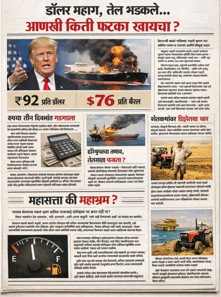 आज प्रश्न विचारण्याची वेळ आली आहे. नगरसेवकापासून ग्रामपंचायत सदस्यांपर्यंत आणि पंतप्रधानांपर्यंत सगळ्यांना विचारायला हवे की अशा अंधाऱ्या परिस्थितीत सामान्य भारतीय नागरिकांचे रक्षण कसे करणार? फक्त घोषणांनी अर्थव्यवस्था चालत नाही, आणि फक्त देशभक्तीच्या घोषणा करून पेट्रोल पंपावर दर कमी होत नाहीत. महासत्ता होण्याच्या गजरात आपण आर्थिक वास्तवाकडे डोळेझाक तर करत नाही ना? रुपया घसरतोय, तेल महागतेय, साठे आटतायत आणि आपण अजूनही सर्व काही नियंत्रणात आहे या मंत्राचा जप करतोय.