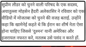 इराणच्या असेम्ब्ली ऑफ एक्सपर्टस या सर्वोच्च धार्मिक परिषदेनं घेतलेला निर्णय हा थेट डोनाल्ड ट्रम्प यांच्या धमक्यांना दिलेला राजकीय चपराक असल्यासारखा आहे. तुमचा सर्वोच्च नेता माझ्या मर्जीने असला पाहिजे, नाहीतर जो कोणी नेता बनेल त्याला संपवू अशा गर्विष्ठ भाषेला इराणने स्पष्ट शब्दांत फाटा दिला आहे. इराण म्हणजे काही एखादे बाहुलं राज्य नाही की जे वॉशिंग्टनच्या इशाऱ्यावर नाचेल. इराण हा स्वतःच्या निर्णयांवर उभा असलेला राष्ट्र आहे आणि ते पुन्हा एकदा सिद्ध झाले आहे.