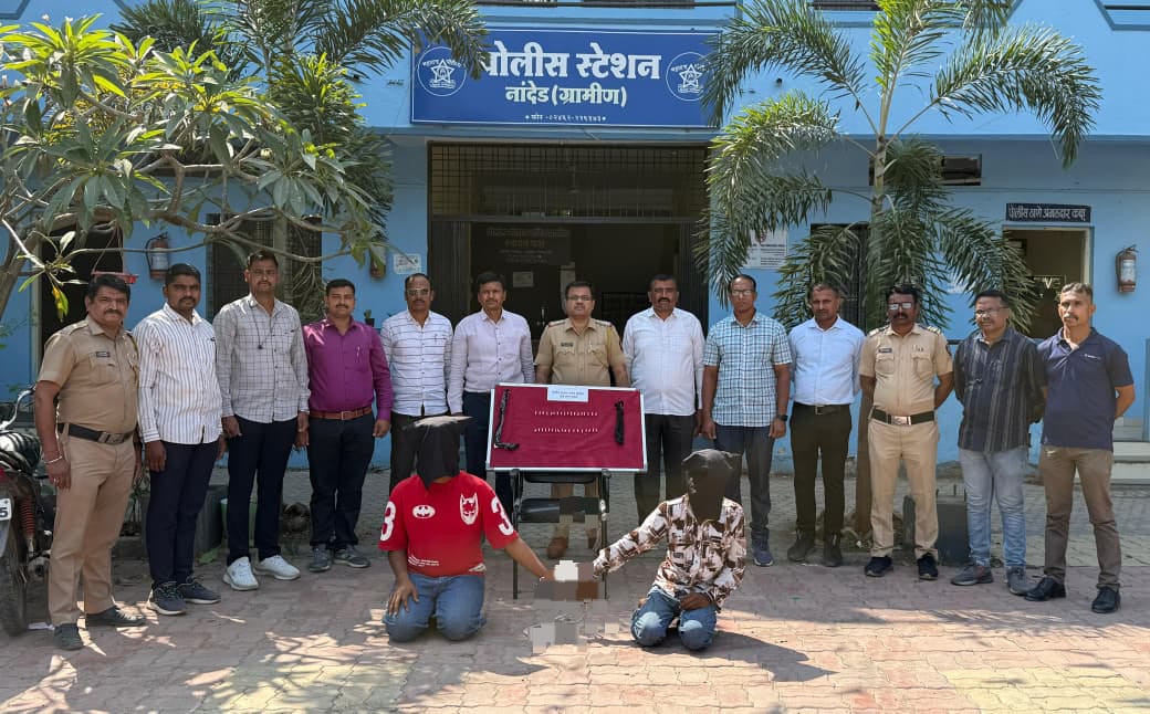 पोलिसांना मिळालेल्या गुप्त माहितीनुसार 11 मार्च 2026 रोजी रात्री 10.00 वाजण्याच्या सुमारास नांदेड ग्रामीण हद्दीत संशयित इसम फिरत असल्याची माहिती मिळाली. त्यानुसार पोलिसांनी सापळा रचून 12 मार्च 2026 रोजी पहाटे 2.34 वाजता कारवाई करत दोन आरोपींना ताब्यात घेतले.