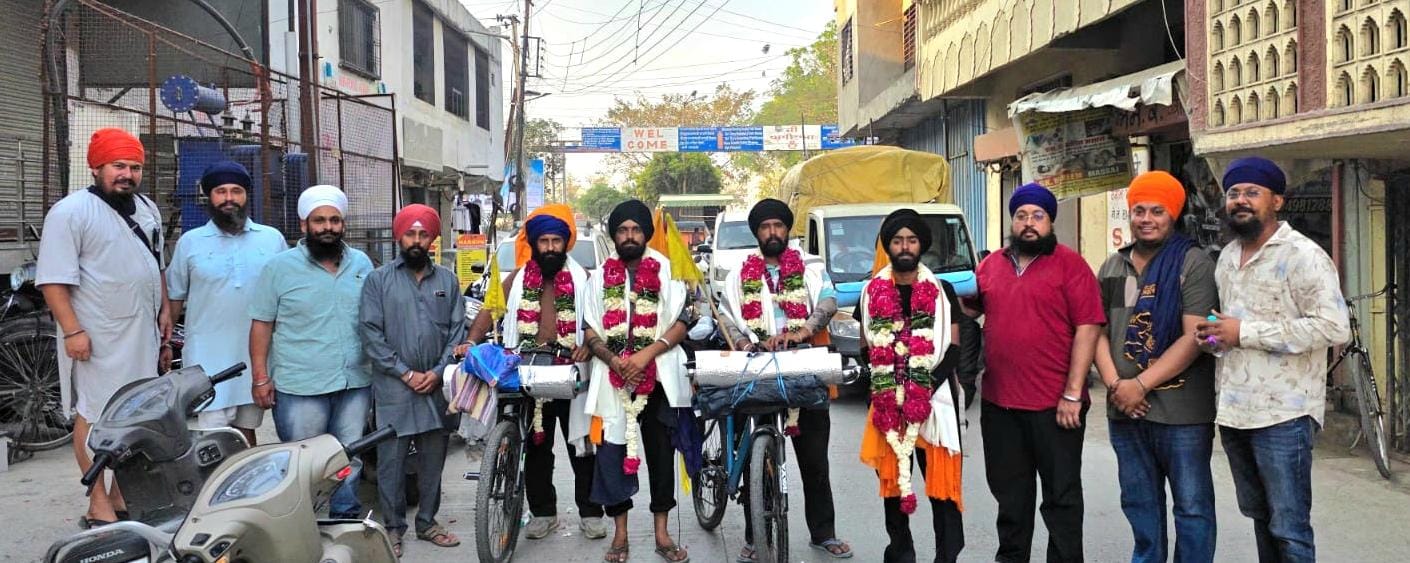 नांदेड़- हजुरी क्रांती संघटना के तरफ से पंजाब से तखत सचखंड श्री हजुर साहेब नांदेड पैदल यात्रा सायकल यात्रा करनेवाले श्रद्धालु जसप्रीत सिंघ, अमनदीप सिंघ,