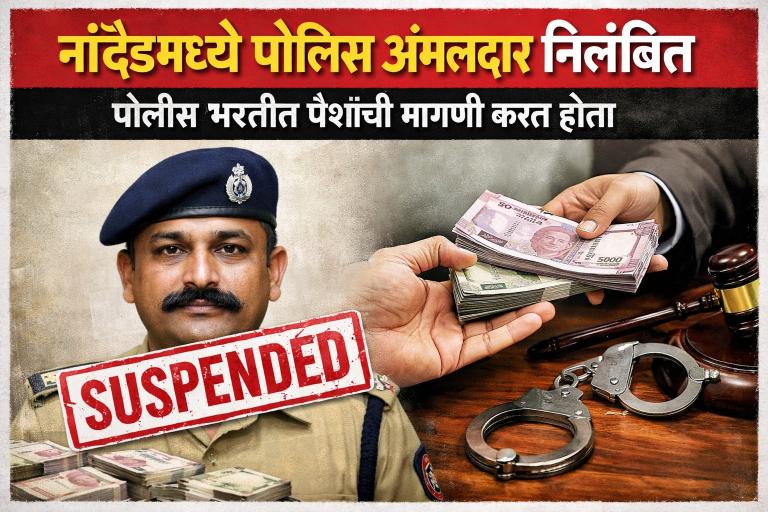 नांदेड पोलिसांनी दिलेल्या अधिकृत माहितीनुसार, पोलिस अंमलदार नागनाथ माधव नागरगोजे यांना महाराष्ट्र पोलीस अधिनियम १९५१ चे कलम २५ तसेच मुंबई पोलीस शिक्षा व अपील नियम १९५६ मधील नियम ३ अंतर्गत निलंबित करण्यात आले आहे. दरम्यान, या प्रकरणी विभागीय चौकशी सुरू करण्यात आली असून दोषी आढळल्यास संबंधितावर पुढील कठोर कायदेशीर कारवाई करण्यात येणार असल्याचेही पोलिस विभागाकडून स्पष्ट करण्यात आले आहे. पोलीस भरती प्रक्रिया पारदर्शक ठेवण्यासाठी अशा प्रकारांवर कठोर कारवाई केली जाईल, असा इशाराही प्रशासनाने दिला आहे.