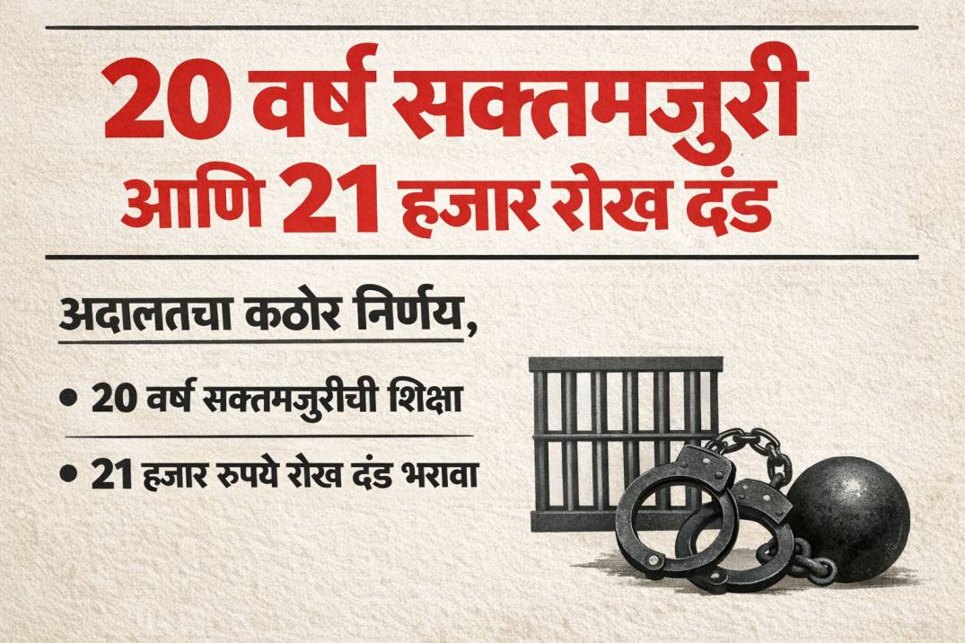 मुखेड (प्रतिनिधी)- मुखेड पोलीस ठाण्याच्या हद्दीत राहणाऱ्या अल्पवयीन बालिकेवर अत्त्याचार करणाऱ्या नराधमाला मुखेडचे विशेष न्यायाधीश एस.पी. देशमुख यांनी २० वर्ष सक्तमजुरी आणि १० हजार रुपये रोख दंड ठोठावला आहे.