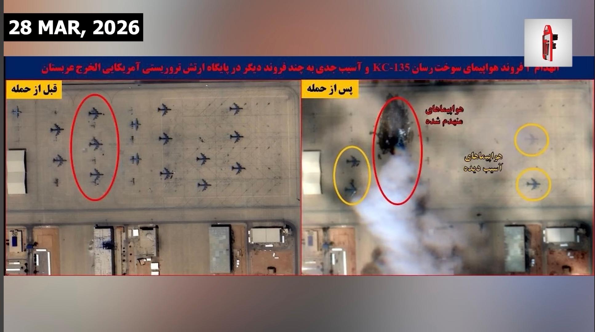 दरम्यान, अमेरिकेची KC-135 हवाई इंधन भरणारी तीन विमाने नष्ट करण्यात आल्याचा दावा करण्यात आला आहे. सौदी अरेबियातील सुलतान एअर बेसवर अमेरिकन सैनिकांवर हल्ला झाल्याचे वृत्त असून मागील चार आठवड्यांत 30 पेक्षा जास्त सैनिक जखमी झाले आहेत. इराणमध्येही मोठ्या प्रमाणावर हानी झाली असून हजारो लोकांचा मृत्यू झाला असल्याचे सांगितले जात आहे. यात वरिष्ठ सैनिकी आणि अर्धसैनिक अधिकाऱ्यांचाही समावेश असल्याची माहिती आहे.
