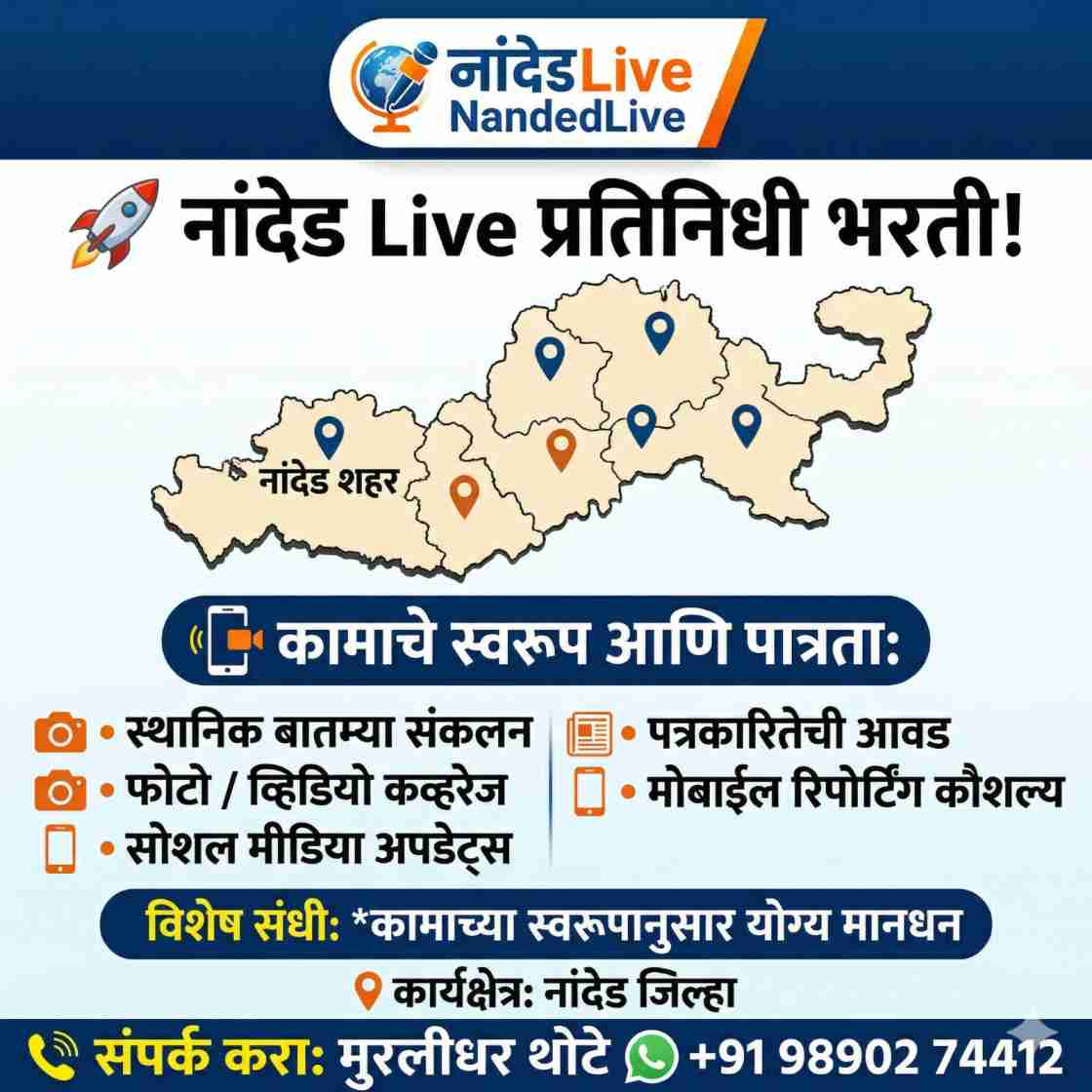 рддреБрдореНрд╣рд╛рд▓рд╛ рдкрддреНрд░рдХрд╛рд░рд┐рддреЗрдЪреА рдЖрд╡рдб рдЖрд╣реЗ рдХрд╛? рддреБрдордЪреНрдпрд╛ рдкрд░рд┐рд╕рд░рд╛рддреАрд▓ рдмрд╛рддрдореНрдпрд╛ рдЬрдЧрд╛рд╕рдореЛрд░ рдЖрдгрд╛рдпрдЪреНрдпрд╛ рдЖрд╣реЗрдд рдХрд╛? рддрд░ рдордЧ NandedLive рдкрд░рд┐рд╡рд╛рд░рд╛рдд рд╕рд╛рдореАрд▓ рд╡реНрд╣рд╛!