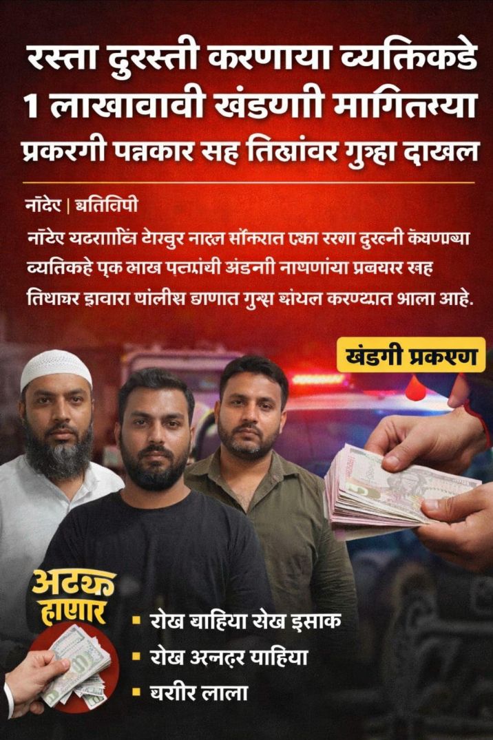 तक्रारदार सय्यद फसिओद्दीन (वय ४६ वर्षे, रा. रहमत नगर) हे व्यावसायिक असून त्यांनी २९ मार्च २०२६ रोजी रात्रीपासून देगलूर नाका येथील खराब रस्त्यामुळे होणारा त्रास पाहून स्वखर्चाने रस्ता दुरुस्तीचे काम सुरू केले होते.३० मार्च रोजी दुपारी १२:३० च्या सुमारास ते काम पाहत असताना आरोपी शेख याहिया शेख इसाक, शेख अजहर याहिया आणि बशीर लाला हे त्या ठिकाणी आले. तेव्हा त्यांनी सांगितले की हे रस्त्याचे कम करण्याचे सर्व पैसे महानगर पालिका तुम्हाला देणार आहे. शेख याहिया याने स्वतःला महाराष्ट्र माझा न्यूज चॅनेलचा आणि पुकार या वर्तमान पत्राचा संपादक असल्याचे सांगून तक्रारदाराला विचारले की, तुम्ही रस्ता दुरुस्तीचे काम का करत आहात? जर हे काम सुरू ठेवायचे असेल तर १,००,००० (एक लाख) रुपये द्यावे लागतील, अशी मागणी आरोपींनी केली. पैसे न दिल्यास न्यूज चॅनेलवरून बदनामी करण्याची आणि खोट्या पोलीस तक्रारी करून अडकवण्याची धमकीही आरोपींनी दिली.