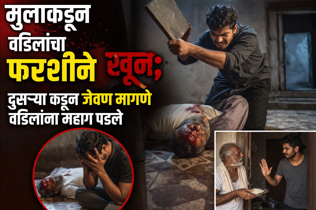 मुलाकडून वडिलांचा फरशीने खून;दुसऱ्या कडून जेवण मागणे वडिलांना महाग पडले