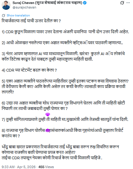 3) नंतर आपण म्हणालात AI च्या माध्यमातून मिळाली. खरंच? कुठलं AI अॅप लोकांचे कॉल डिटेल्स काढून देतं याबद्दल तुम्ही महाराष्ट्राला माहिती द्यावी.