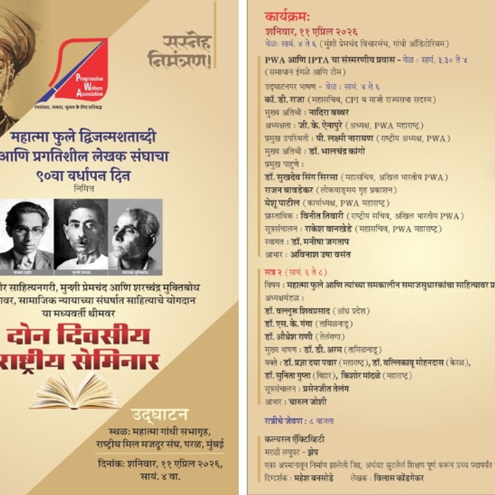 82 वर्षांनंतर मुंबईत 'प्रगतिशील लेखक संघाचा'चा हुंकार!:11 आणि 12 एप्रिल रोजी राष्ट्रीय सेमिनारचे आयोजन