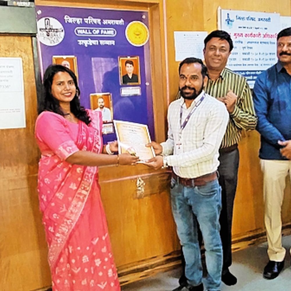 येथील जिल्हा परिषदेच्या ‘वॉल ऑफ फेम’वर मार्च महिन्यातील उत्कृष्ट कामगिरीसाठी तीन नव्या कर्मचाऱ्यांची छायाचित्रे झळकली आहेत. यामध्ये शिक्षण विभागातील वरिष्ठ सहायक शरद चहाकार, मुख्यालयातील बीम्स प्रणाली सांभाळणारे स्वप्नील बेंडे आणि बांधकाम विभागाच्या दर्यापुर येथील कार्यालयात कार्यरत उपअभियंता मंगेश पुनसे यांचा समावेश आहे. या सर्व कर्मचाऱ्यांना मुख्यालयातील कार्यालय प्रमुखांच्या उपस्थितीत सीईओ संजीता महापात्र यांच्या हस्ते सन्मानीत करण्यात आले. सर्वोत्कृष्ट कामकाजासाठी जिल्हा परिषदेच्या अधिकारी, कर्मचाऱ्यांमध्ये निकोप स्पर्धा व्हावी, यासाठी सीईओ महापात्र यांच्या संकल्पनेतून जि.प. प्रशासनाने जानेवारी २०२६ पासून हा उपक्रम सुरु केला आहे. त्यामुळे डिसेंबर २०२५ मध्ये उत्कृष्ट कामकाज करणारे तीन कर्मचारी ‘वॉल ऑफ फेम’चे पहिले मानकरी ठरले होते. तेव्हापासून दरमहा ही वॉल ऑफ फेम पुढे-पुढे सरकत आहे. सदर ‘वॉल ऑफ फेम’ ही सीईओंच्या दालनाबाहेर दर्शनी भागात उभी करण्यात आली असून ती जिल्हा परिषदेत ये-जा करणाऱ्या नागरिकांच्या सहजच दृष्टीस पडते. त्यामुळे गेल्या महिन्यात कुणी उत्कृष्ट काम केले, त्याचा विभाग कोणता आणि जबाबदारी कोणती, याची माहितीसुद्धा जनमानसांपर्यंत पोहोचते. गेल्या महिन्यात सर्वच विभागांमध्ये मार्च एन्डींगची घाई होती. त्यामुळे प्रत्येकच विभाग आपापल्या कामात गर्क होता. तरीदेखील आपली जबाबदारी अत्यंत चोखपणे पार पाडून चहाकार, पुनसे आणि बेंडे यांनी आपल्या कर्तव्यात वेगळा ठसा उमटवला. वाल ऑफ फेमसाठी जिल्ह्यातील सर्वच खातेप्रमुखांकडून त्यांच्या कामकाजाची माहिती मागविण्यात आली होती. त्यानंतर सर्व कर्मचाऱ्यांमध्ये स्पर्धा करुन सदर तिघांची निवड करण्यात आली. या निवडीनंतर तिघांनाही मुख्यालयी पाचारण करुन सीईओ संजीता महापात्र यांच्या हस्ते त्यांचा गौरव करण्यात आला. मंगेश पुनसे हे काही अपरिहार्य कारणास्तव या कार्यक्रमाला उपस्थित राहु न शकल्याने त्यांच्यावतीने कनिष्ठ अभियंता जगदीश पानसे यांनी सन्मान स्वीकारला. यावेळी अतिरिक्त सीईओ विनय ठमके, जिल्हा परिषदेच्या मुख्य लेखा व वित्त अधिकारी शिल्पा पवार, बांधकाम विभागाचे कार्यकारी अभियंता दिनेश गायकवाड आणि इतर विभागातील अधिकारी, कर्मचारी उपस्थित होते. शरद महादेवराव चहाकार हे शिक्षण विभागात वरिष्ठ सहाय्यक या पदावर कार्यरत आहेत. त्यांनी खाजगी शाळा आस्थापनांचे अभिलेखे संगणकीकृत केले. वाल ऑफ फेमचे दुसरे मानकरी स्वप्नील बेंडे यांनी बीम्स प्रणालीवर उद्दिष्टानुसार शंभर टक्के ध्येयप्राप्ती केली, तर मंगेश पुनसे हे दर्यापुर येथील बांधकाम विभागात उप अभियंता पदावर कार्यरत आहेत. त्